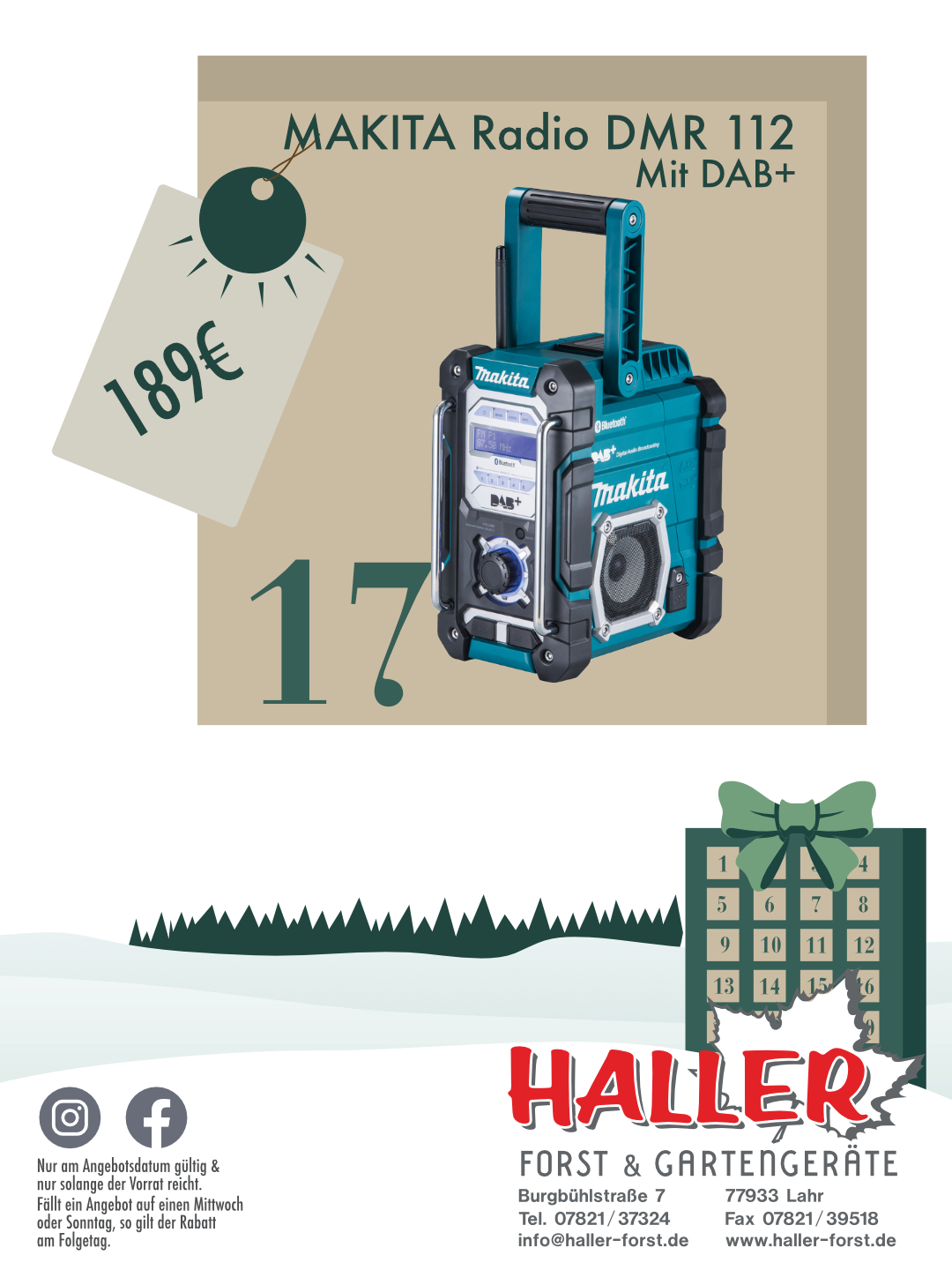 mehr lesen ...24 Tage. Jeden Tag ein Werkzeugangebot. Im Advent öffnet Haller online und auf Social Media ein neues Türchen.