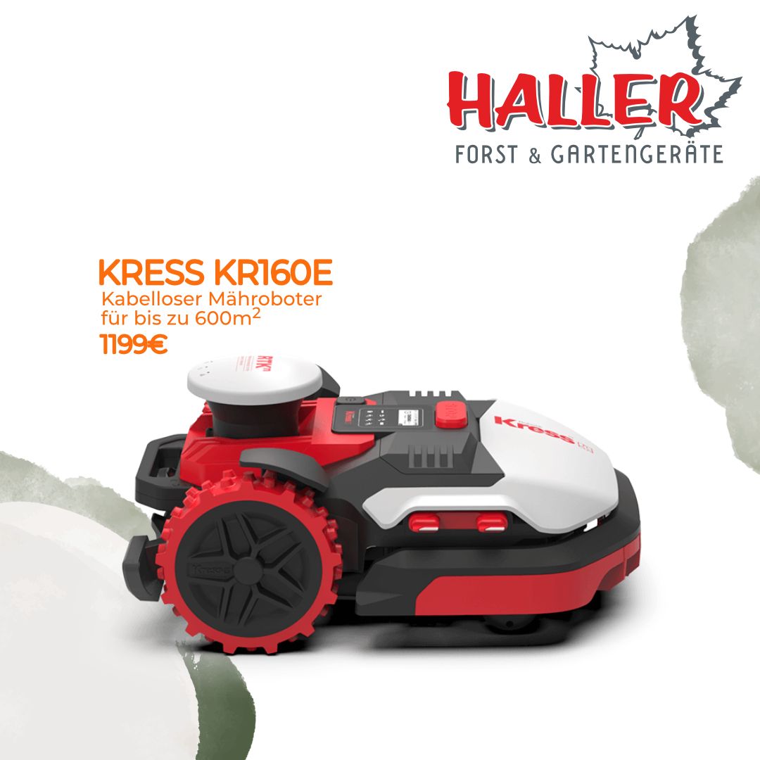 Beim Herbstfest von Haller Forst & Gartengeräte wartet ein Highlight für alle Gartenfreunde: der Kress KR160E, ein kabelloser Mähroboter für Flächen bis 600 m², zum Sonderpreis von 1199 €.